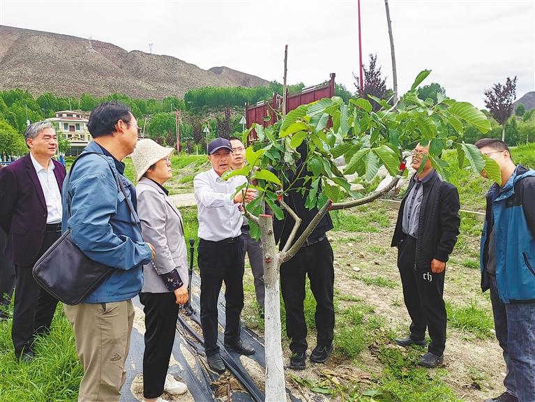 “高原核桃產(chǎn)業(yè)技術(shù)研究,涉及許多核心指標(biāo),這些指標(biāo)在學(xué)術(shù)上具有什么樣的水平,在國(guó)內(nèi)處于什么位置,這些都是非常專(zhuān)業(yè)的問(wèn)題。因此,需要行業(yè)內(nèi)的專(zhuān)家做出相關(guān)方面的鑒定,為我們項(xiàng)目的驗(yàn)收與結(jié)題提供支撐和充分的依據(jù)?!遍L(zhǎng)江大學(xué)援藏工作隊(duì)隊(duì)長(zhǎng)許曉宏向記者介紹。此次鑒定內(nèi)容包括平臺(tái)建設(shè)與技術(shù)研究?jī)煞矫妫唧w有實(shí)驗(yàn)室面積、選育圃、采穗圃、育苗圃、生態(tài)高效栽培示范園建設(shè)總面積、優(yōu)株或品系的篩選推廣和示范、優(yōu)株嫁接苗數(shù)量、采穗圃年生產(chǎn)接芽能力、核桃生產(chǎn)技術(shù)人才培養(yǎng)等。