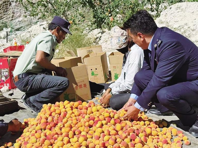 七月的底雅鄉(xiāng),昆侖山的融雪順著溝壑淌進(jìn)果園,滋潤(rùn)著枝頭累累碩果。阿里地區(qū)稅務(wù)局駐丁固村工作隊(duì)將紅色宣傳旗插在鄰村什布奇村的杏林邊,與金燦燦的果實(shí)相映成趣。駐村隊(duì)員們和村民們一同蹲在田埂上,他們圍繞特色林果業(yè)發(fā)展這一主題,用通俗易懂的方式講解稅費(fèi)政策,讓村民們聽得懂、記得住、用得上。