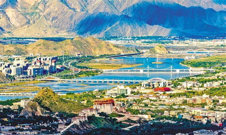 1965年8月25日,橫跨拉薩河的第一座大橋——拉薩大橋正式落成通車,結(jié)束了當?shù)厝罕娍颗Fしざ珊拥臍v史。如今僅在拉薩市區(qū),就有柳東大橋、青藏鐵路拉薩河特大橋、和美橋、柳梧大橋、連心橋、迎親橋、拉薩大橋、藏熱大橋、納金大橋等眾多大橋跨越拉薩河。拉薩河上的橋梁方便了人們的生活,扮靚了城市的風景,也是西藏經(jīng)濟社會發(fā)展、交通基礎(chǔ)設(shè)施建設(shè)日新月異的見證。