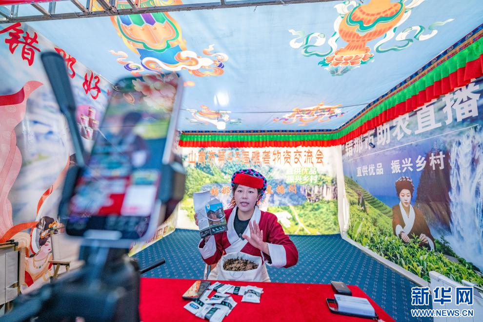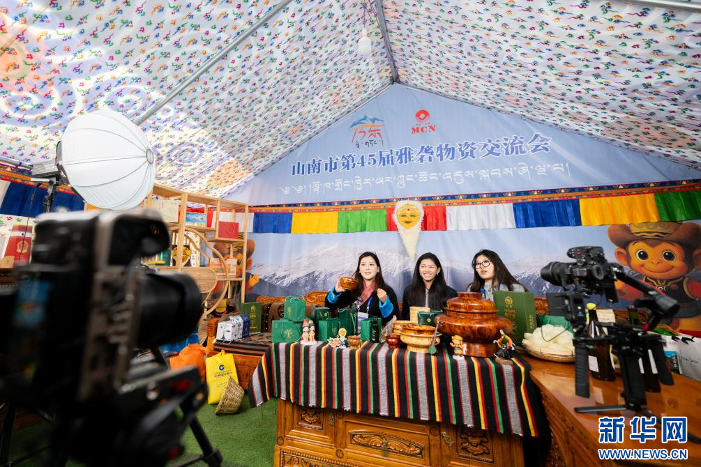 12月1日拍攝的第45屆雅礱物資交流會(huì)電商直播主場(chǎng)。新華網(wǎng) 旦增努布 攝