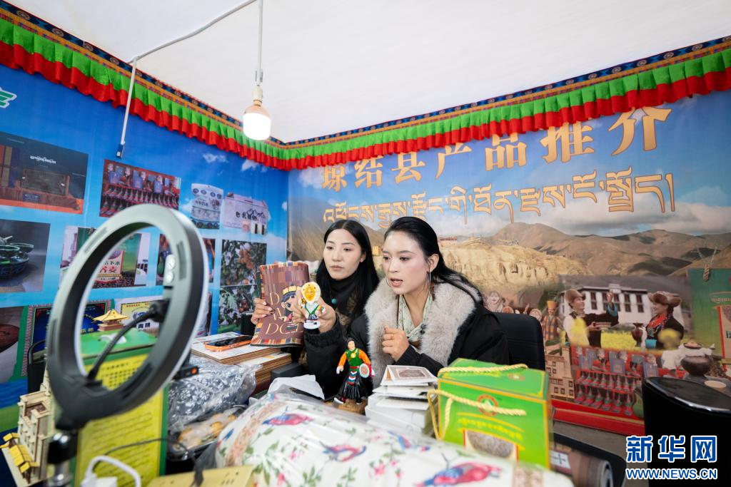 12月1日,來自西藏瓊結(jié)縣的助農(nóng)主播在直播間介紹產(chǎn)品。新華網(wǎng) 旦增努布 攝