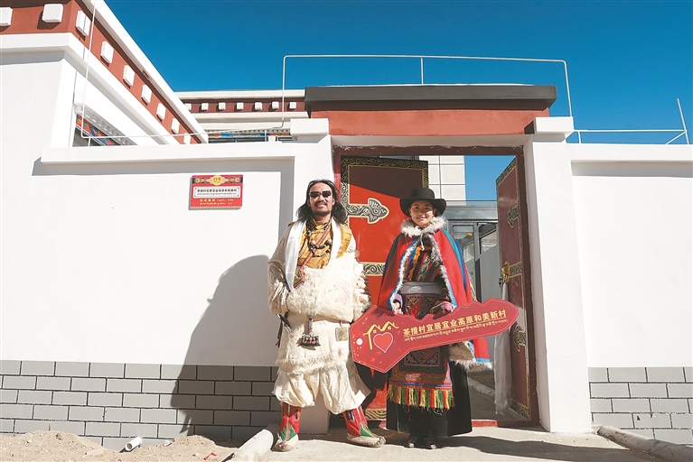 村民在自家新居門前合影。記者 永青 周輝 報道 圖片由改則縣融媒體中心提供