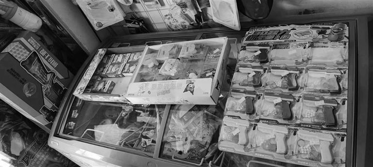 “這些貨都是之前賣剩下的,校警檢查時(shí)給我說過禁止售賣此類玩具給學(xué)生,但是除了學(xué)生,很多年輕人也喜歡,我現(xiàn)在都是將這些玩具放在貨架高處,不賣給學(xué)生,但是我不會(huì)完全處理掉,畢竟我也要生活?!痹撋啼伬习逭f。