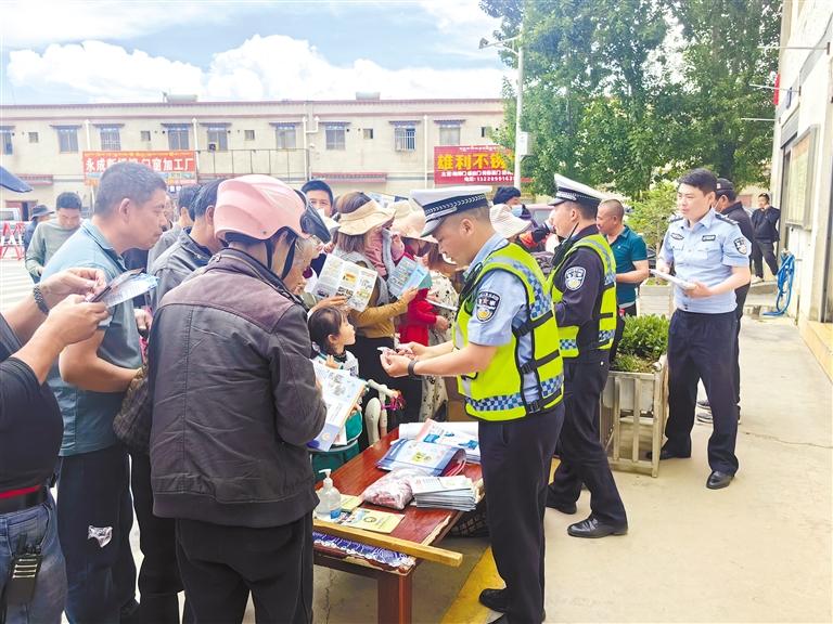 圖為民(輔)警為社區(qū)居民發(fā)放宣傳資料。記者 鹿麗娟 攝