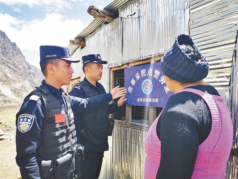 金東邊境派出所民警為群眾介紹蟲草采挖點警務(wù)室職能。 (本文配圖由通訊員 張力 記者 謝筱純 王珊 攝)