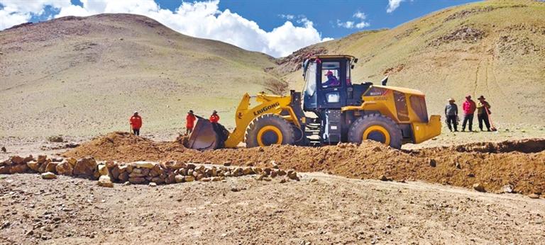 修路過程中,駐村工作隊充分發(fā)揮模范帶頭作用,與群眾一起奮戰(zhàn)在修路一線。措勤縣愛心企業(yè)西藏惠剛建筑工程有限責(zé)任公司為此次村民維修轉(zhuǎn)場路免費提供所需油料及大型設(shè)備。
