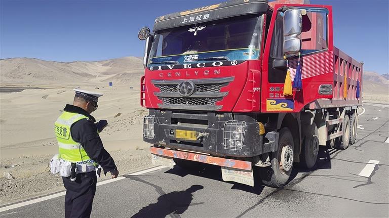交警對過往車輛進(jìn)行檢查。圖由自治區(qū)交管局提供