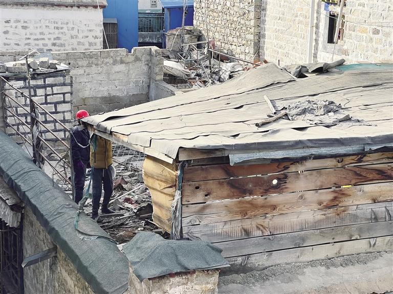 來到八朗學(xué)社區(qū)轄區(qū)內(nèi)的一處藏餐館,旦增曲扎介紹,該藏餐館曾經(jīng)搭建了近80平方米的違法建筑當(dāng)作倉庫使用。近日,社區(qū)工作人員一直和居民進行溝通,讓他們了解到違建的危害和拆除的必要性。對于特殊困難的居民,社區(qū)積極上報,爭取為他們提供安置幫助。“我們的工作人員和居民一直保持良好溝通,確保拆除工作順利進行,到目前為止,我們沒有和居民發(fā)生任何沖突,同時,未發(fā)生安全事故?!钡┰銮f。