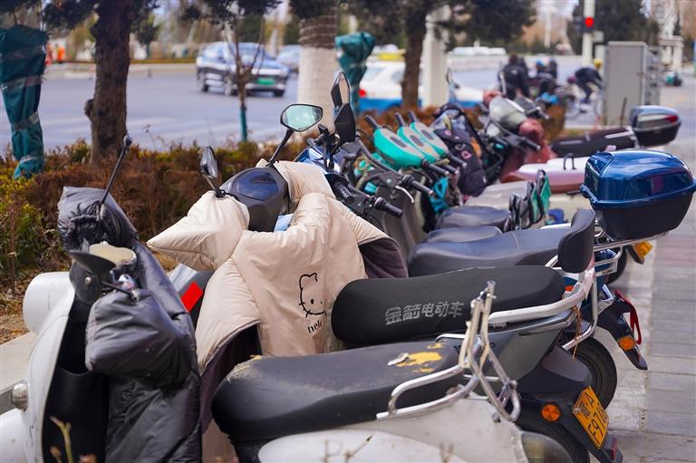 氣溫逐漸變冷,人們出行時(shí)紛紛全副武裝。不少騎電動(dòng)車(chē)出行的市民選擇為愛(ài)車(chē)加裝“御寒神器”。在拉薩街頭,不少電動(dòng)車(chē)都安裝了擋風(fēng)被,其顏色、造型、款式各異,其中護(hù)膝型、套把型擋風(fēng)被尤為常見(jiàn)。