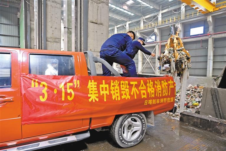 圖為日喀則市消防救援支隊(duì)工作人員集中銷毀不合格消防產(chǎn)品。 記者 扎西頓珠 攝