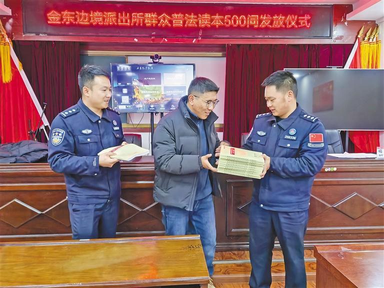金東邊境派出所組織普法讀本發(fā)放儀式現(xiàn)場。 記者 王香香 攝