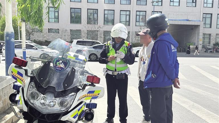 4月22日下午,記者來到拉薩市江蘇東路與嘎瑪貢桑路交叉路口,此時車來車往,道路交通十分繁忙,拉薩市公安局交警支隊的民警們正在路口疏導交通,并提醒過往電動車駕駛員佩戴好安全頭盔。行動中,一輛摩托車迎面而來,由于乘客未佩戴安全頭盔被執(zhí)勤民警攔下,民警耐心地講解了佩戴安全頭盔的重要性以及不佩戴安全頭盔可能帶來的危害,并依法對其進行了處罰。“以后騎摩托車出行,我們一定會佩戴好安全頭盔,遵守交通規(guī)則,確保自身安全?!蹦ν熊囻{駛員李某說。