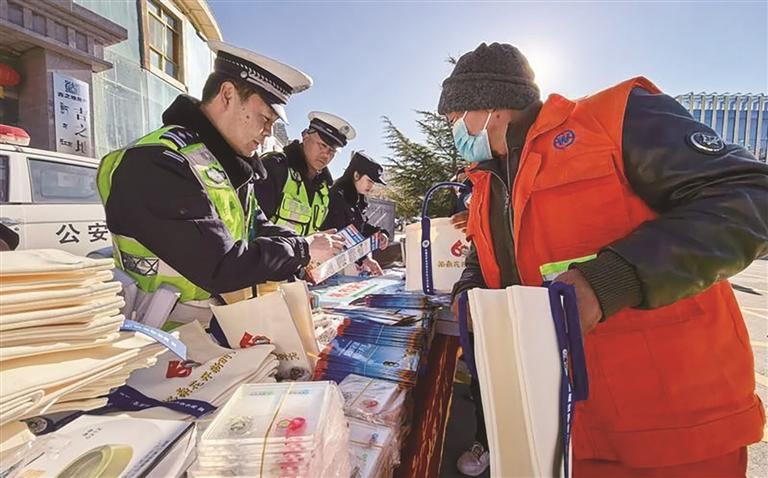“您好,請(qǐng)看看這份資料,騎電動(dòng)車一定要佩戴好安全頭盔?!薄皫煾?,冬季路面易滑,行車請(qǐng)保持安全距離?!痹诶_經(jīng)濟(jì)技術(shù)開(kāi)發(fā)區(qū)陽(yáng)光新城小區(qū)附近,經(jīng)開(kāi)區(qū)交警大隊(duì)的民警們正忙碌地布置宣傳展臺(tái),印有藏漢雙語(yǔ)的宣傳折頁(yè)、實(shí)用又貼心的交通安全提示小禮品、交通安全模擬體驗(yàn)……吸引了不少過(guò)往市民駐足觀看。民警們一邊發(fā)放宣傳資料,一邊耐心細(xì)致地講解交通安全知識(shí),邀請(qǐng)市民佩戴酒駕模擬眼鏡嘗試行走,直觀感受酒后駕駛的眩暈感,了解酒駕的危害。美團(tuán)外賣騎手趙海龍告訴記者:“我們天天在路上跑,安全才是最快的配送速度。以后我不僅自己會(huì)遵守交通規(guī)則,還會(huì)提醒身邊的同行,自覺(jué)遵守道路交通法律法規(guī),做到安全文明出行?!?/p>