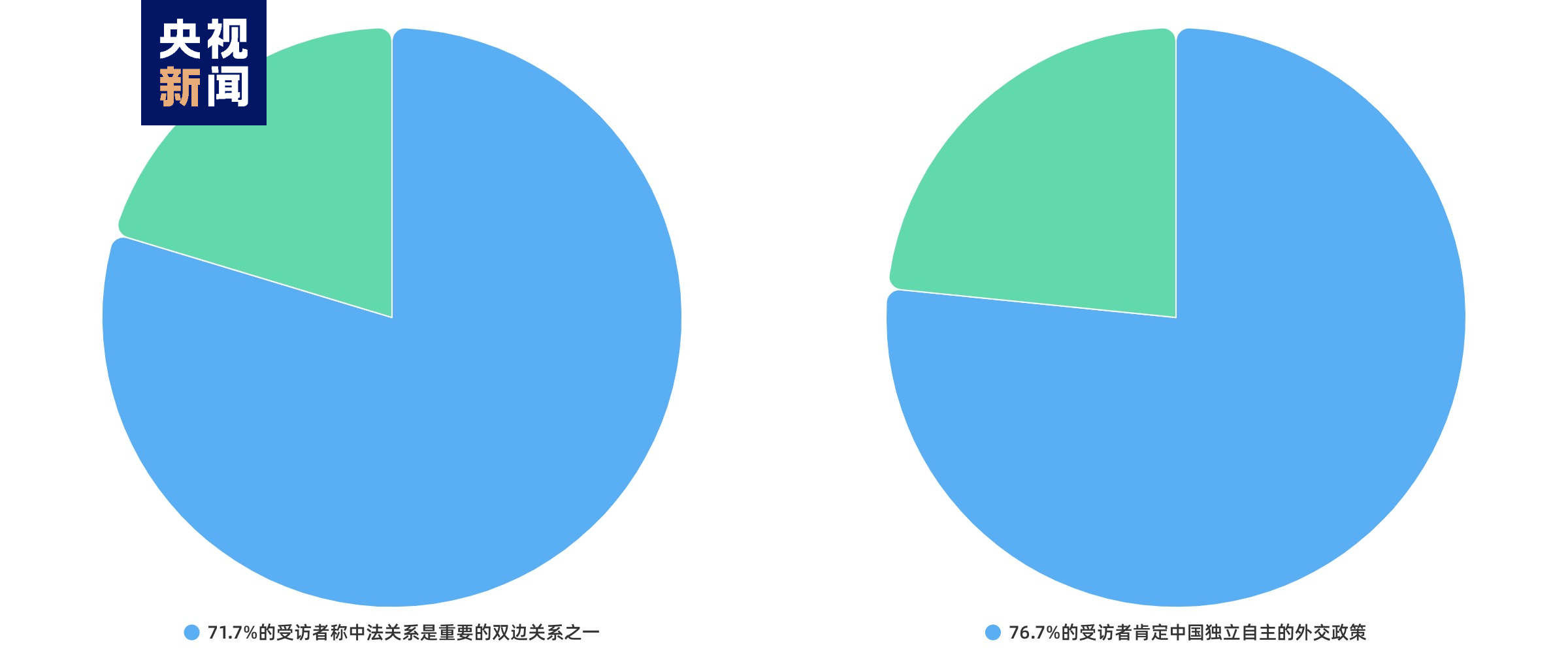 調(diào)查中,71.7%的受訪者認(rèn)為中法關(guān)系是全球重要的雙邊關(guān)系之一;61.6%的受訪者對(duì)中法關(guān)系未來的發(fā)展表示樂觀,期待雙方進(jìn)一步加強(qiáng)在經(jīng)貿(mào)、科技等領(lǐng)域的合作;65.1%的受訪者認(rèn)為,中法在國際事務(wù)上的密切合作有利于促進(jìn)世界和平與發(fā)展。