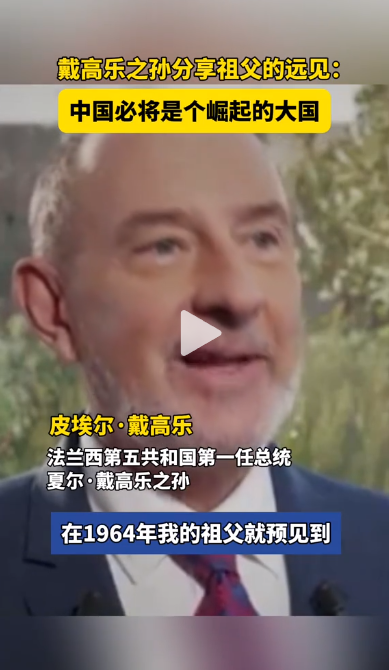 戴高樂(lè)之孫分享祖父對(duì)中國(guó)發(fā)展的遠(yuǎn)見:必將崛起的大國(guó)