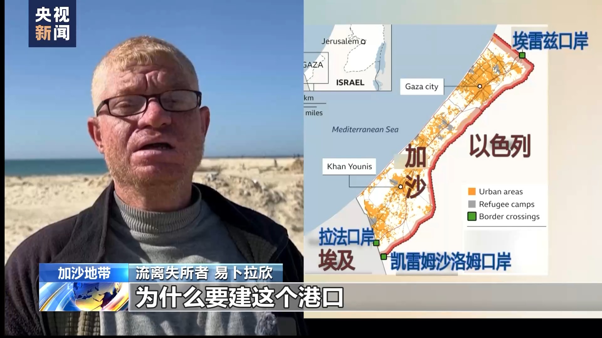 加沙地帶流離失所者 易卜拉欣:我們有凱雷姆沙洛姆口岸,有拉法口岸、有埃雷茲口岸,為什么要建這個(gè)港口?為什么是現(xiàn)在?為什么他們幾年前不建這個(gè)港口呢?