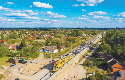 在匈塞鐵路項目現(xiàn)場,鋪軌機正在塞爾維亞邊境的蘇博蒂察進行鋪軌作業(yè)。