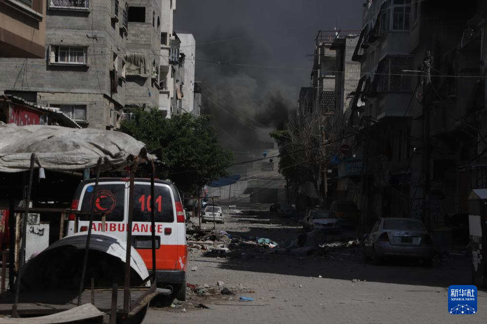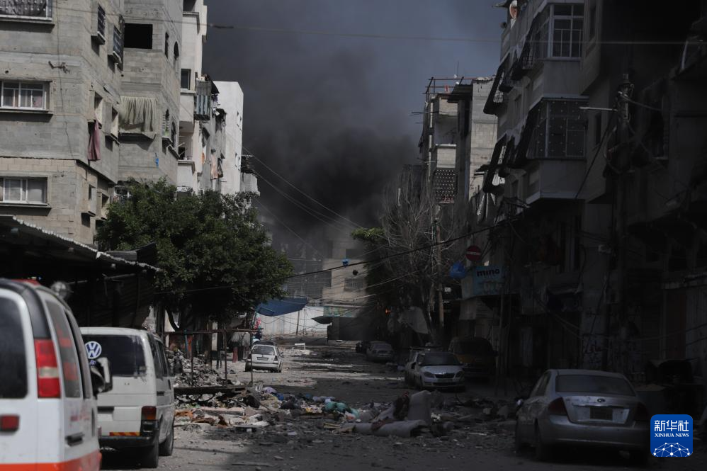 5月13日,在加沙地帶北部杰巴利耶難民營,以軍轟炸后升起濃煙。新華社發(fā)(阿卜杜勒拉赫曼·薩拉馬攝)
