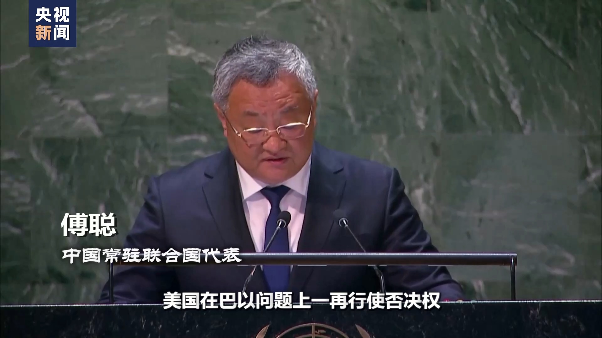 中國常駐聯(lián)合國代表 傅聰:美國在巴以問題上一再行使否決權(quán),無理阻撓國際社會為解決巴勒斯坦長期遭受歷史不公所作出的努力,不符合一個負責(zé)任大國的擔當。