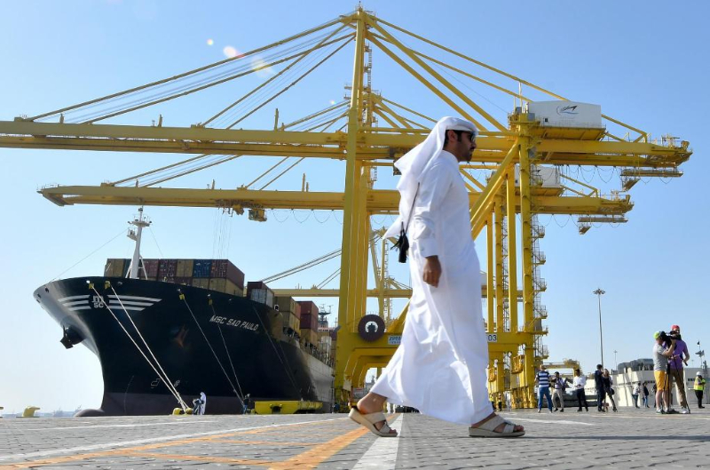 2017年6月14日,一名男子從卡塔爾首都多哈的哈馬德港口走過(guò)。新華社發(fā)(尼庫(kù)攝)