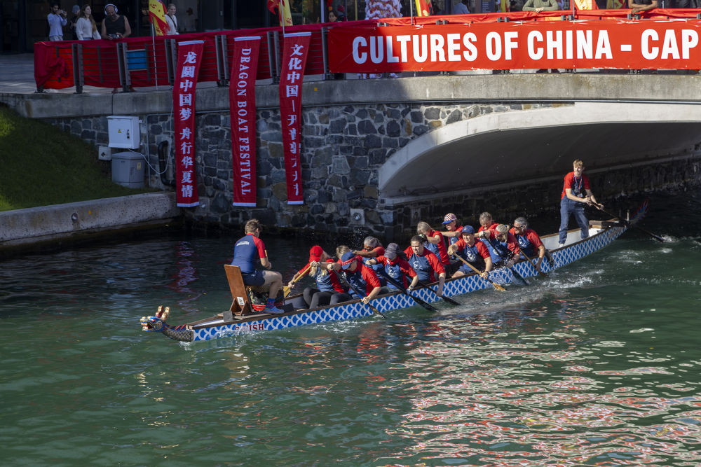 6月8日,人們在南非開普敦參加第二屆“文化中國·開普敦龍舟節(jié)”比賽。新華社記者王雷攝