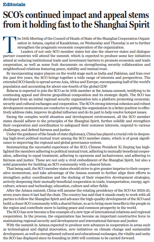 原文標題:SCO's continued impact and appeal stems from it holding fast to Shanghai Spirit