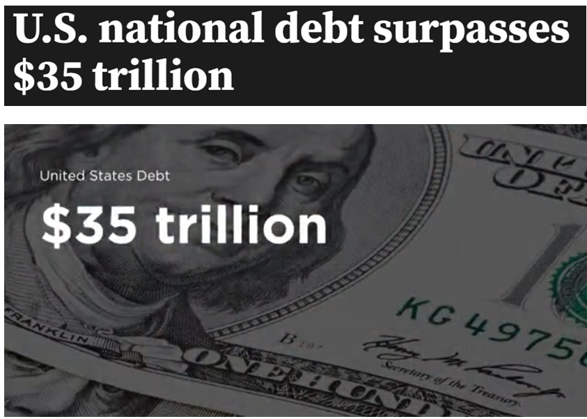 根據(jù)美國財(cái)政部近日發(fā)布的最新數(shù)據(jù),美國國債已超35萬億美元。目前,美國債務(wù)總額比七國集團(tuán)中其他六國的國債總和還要多出15%。