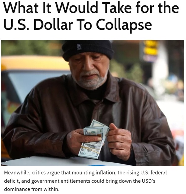 有美國金融新聞網(wǎng)評(píng)論稱,不斷加劇的通貨膨脹、不斷上升的美國聯(lián)邦赤字和政府福利可能會(huì)從內(nèi)部削弱美元在全球金融體系的主導(dǎo)地位。