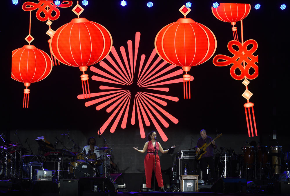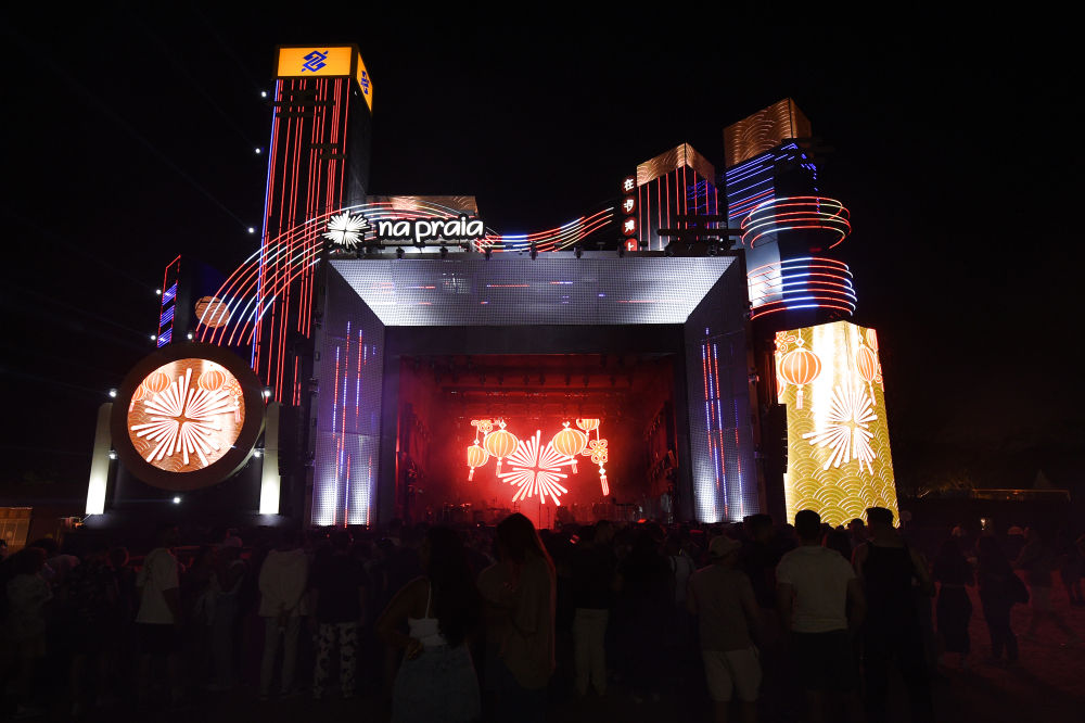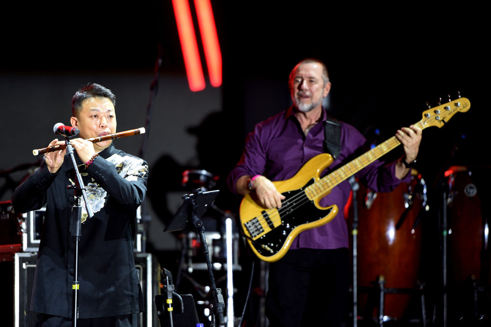 ↑8月17日,在巴西首都巴西利亞,來自中國和巴西的音樂家在沙灘藝術(shù)節(jié)中國日活動上表演合奏。新華社發(fā)(盧西奧·塔沃拉攝)