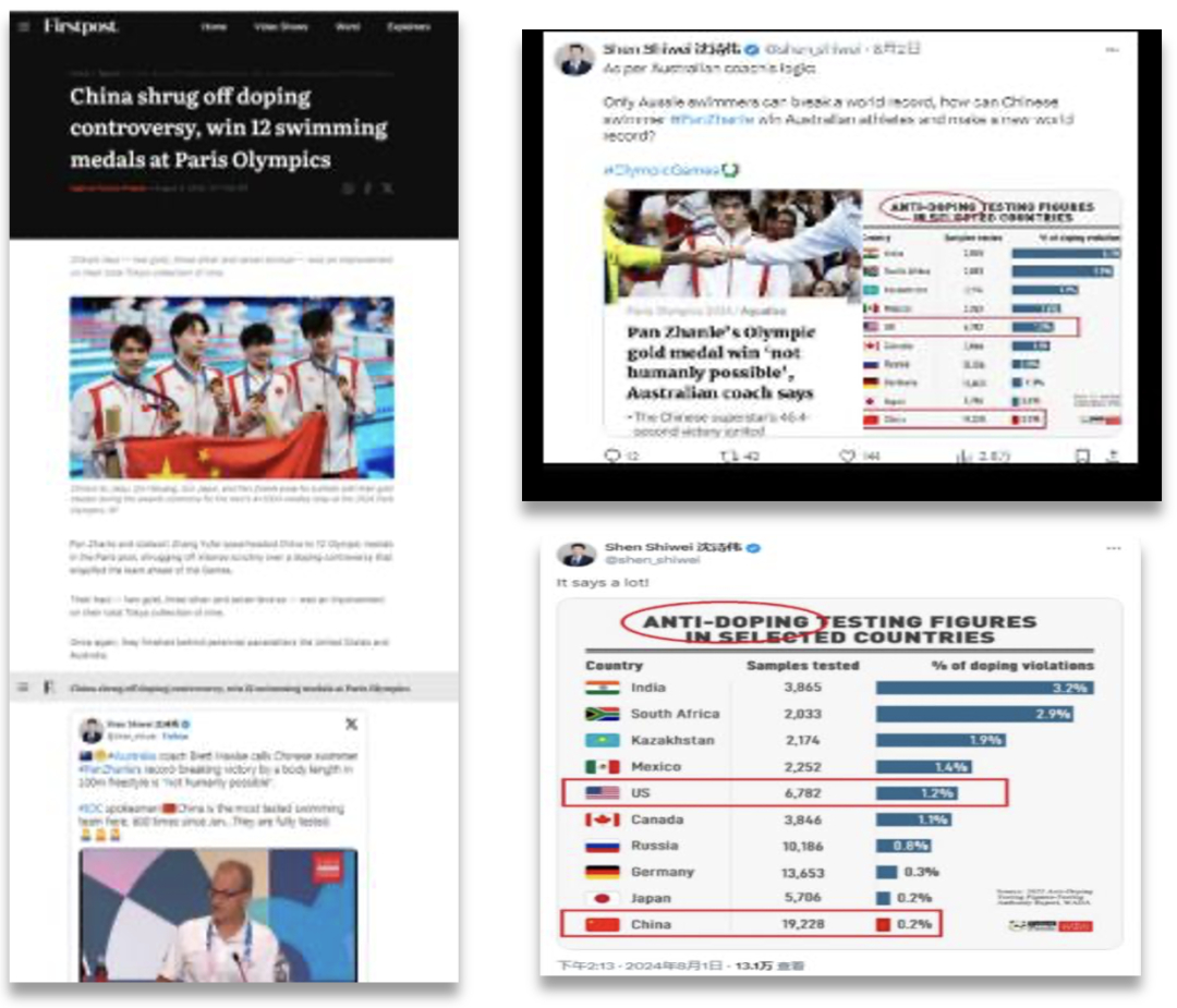 除了用及時(shí)的新聞消息擺出事實(shí),總臺(tái)各評(píng)論欄目節(jié)目鏗鏘發(fā)聲,深度起底美炒作興奮劑問題的真實(shí)動(dòng)機(jī)?!皣?guó)際銳評(píng)”發(fā)布評(píng)論文章《美方必須就大規(guī)模使用興奮劑問題給世界一個(gè)交代》,強(qiáng)調(diào)奧林匹克精神不能被“美式霸權(quán)”玷污,反興奮劑工作不應(yīng)淪為抹黑和打壓他國(guó)的工具;CGTN評(píng)論專欄《對(duì)話》《視點(diǎn)》《今日》等迅速反應(yīng),邀請(qǐng)多位中外業(yè)內(nèi)人士深度訪談,犀利剖析美國(guó)惡意污蔑中國(guó)運(yùn)動(dòng)員背后的險(xiǎn)惡用心;玉淵譚天譚主檢索分析美西方媒體今年以來的相關(guān)報(bào)道數(shù)據(jù),給國(guó)際檢測(cè)機(jī)構(gòu)(ITA)發(fā)送郵件獲取獨(dú)家回應(yīng),并且提取過去二十余年美國(guó)濫用興奮劑事件中的相關(guān)信息,還原美西方抹黑中國(guó)游泳隊(duì)的傳播鏈。