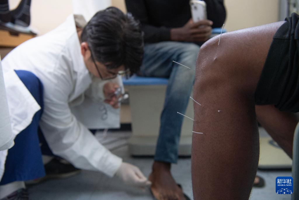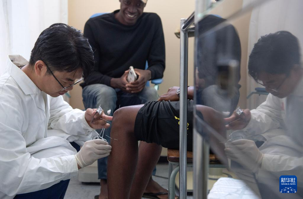 9月9日,在納米比亞首都溫得和克的卡圖圖拉醫(yī)院,醫(yī)療隊(duì)隊(duì)員在中醫(yī)診室為患者進(jìn)行針灸治療。新華社記者 陳誠(chéng) 攝