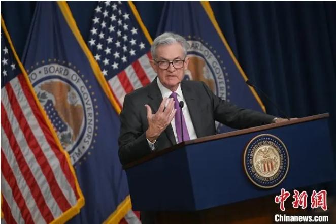 當(dāng)?shù)貢r(shí)間2023年7月26日,時(shí)任美國(guó)聯(lián)邦儲(chǔ)備委員會(huì)主席鮑威爾在華盛頓出席記者會(huì)。美國(guó)聯(lián)邦儲(chǔ)備委員會(huì)26日結(jié)束為期兩天的貨幣政策會(huì)議,宣布將聯(lián)邦基金利率目標(biāo)區(qū)間上調(diào)25個(gè)基點(diǎn)到5.25%~5.5%。中新社記者 陳孟統(tǒng) 攝
