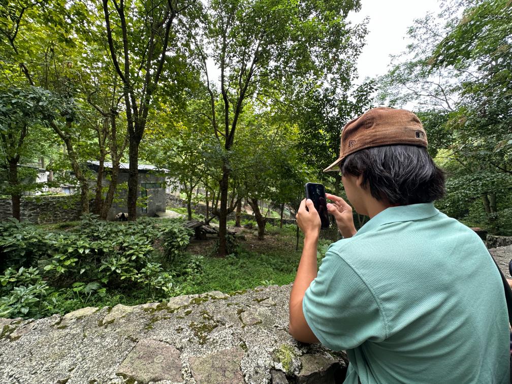 在中國(guó)大熊貓保護(hù)研究中心都江堰基地,一見到大熊貓,謝爾頓就撥通了與家人的視頻電話。他將鏡頭對(duì)準(zhǔn)熊貓,興奮地復(fù)述著導(dǎo)游的講解。