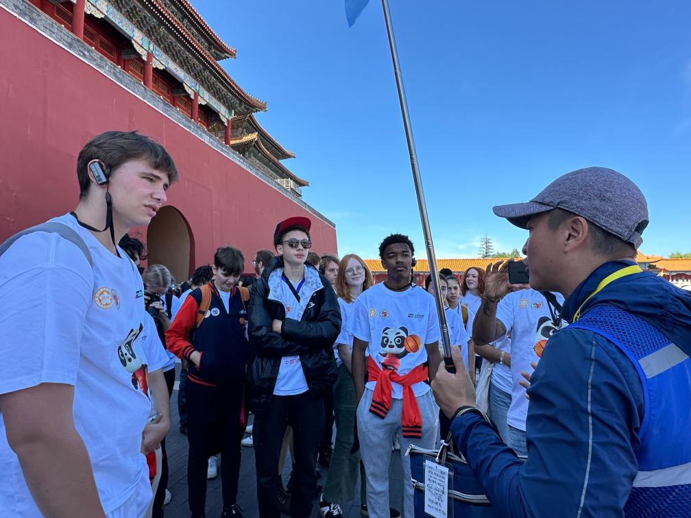 9月22日,美國(guó)青少年在北京故宮聽導(dǎo)游講解。新華社記者 袁睿 攝