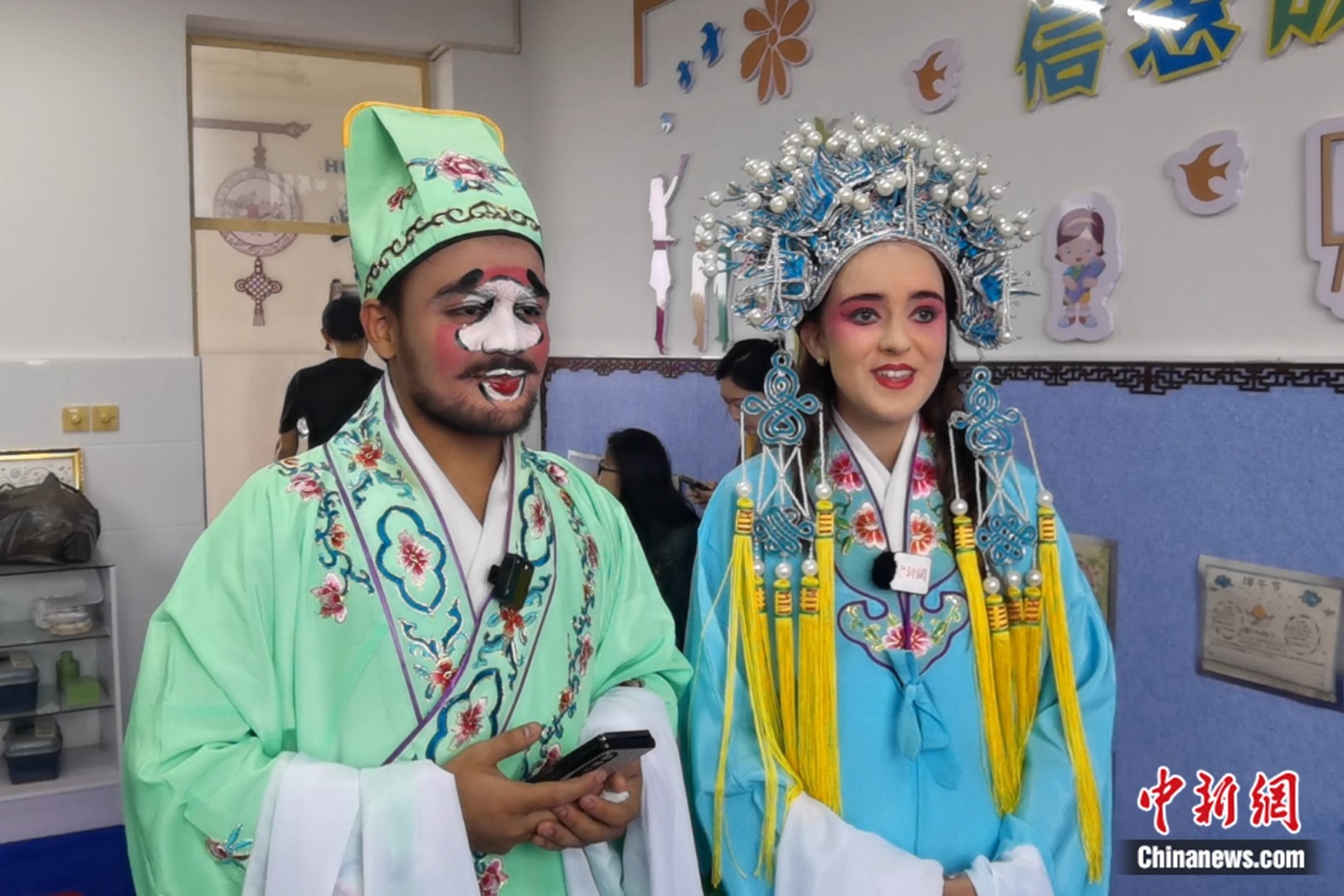 當(dāng)“洋弟子”遇上中國(guó)北方昆曲,他們之間會(huì)碰撞出怎樣的火花?在高陽縣河西村小學(xué),“洋弟子”們穿上戲服、化上戲妝,在老師的指導(dǎo)下認(rèn)真學(xué)習(xí)北方昆曲的唱腔與身段。