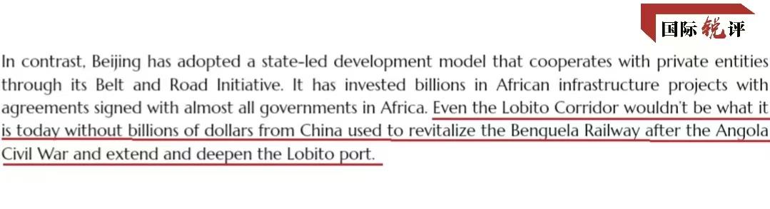 黎文濤認為,美國試圖把“洛比托走廊”包裝成美歐為非洲基建作出的貢獻,完全不符合事實。因為它的核心骨架中國早已搭好,中國才是名副其實的最大貢獻者?!奥灞韧凶呃取惫倬W(wǎng)上也有這樣一段話:“如果沒有中國投入數(shù)十億美元重建本格拉鐵路、擴建洛比托港口,‘洛比托走廊’就沒有當(dāng)今的模樣?!?/p>