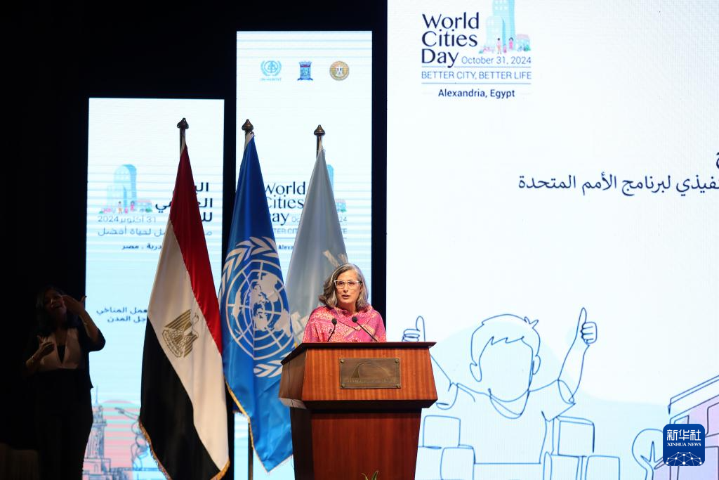 10月31日,在埃及亞歷山大,聯(lián)合國人居署執(zhí)行主任阿納克勞迪婭·羅斯巴赫在活動(dòng)上致辭。新華社記者 王東震 攝
