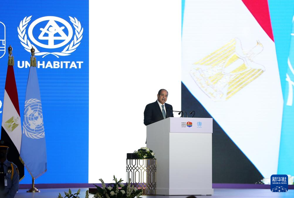 11月4日,在埃及首都開(kāi)羅,埃及總統(tǒng)塞西在第12屆世界城市論壇開(kāi)幕式上致辭。新華社記者 王東震 攝