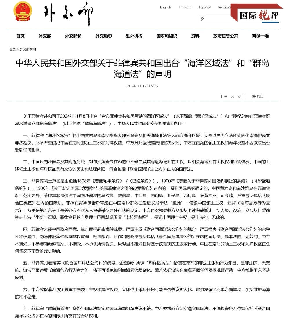 南海本應是和平、友誼與合作之海。然而,菲律賓所作所為違背了地區(qū)人民這一共同心愿,已經成為地區(qū)和平穩(wěn)定的主要破壞者。正告菲方立即停止侵犯中國領土主權和海洋權益的非法行徑,立即停止任何可能導致南海爭議擴大化、局勢復雜化的單方面舉動。倘若菲方依據“惡法”在南海進一步侵權挑釁,中方必將堅決應對,說到做到。