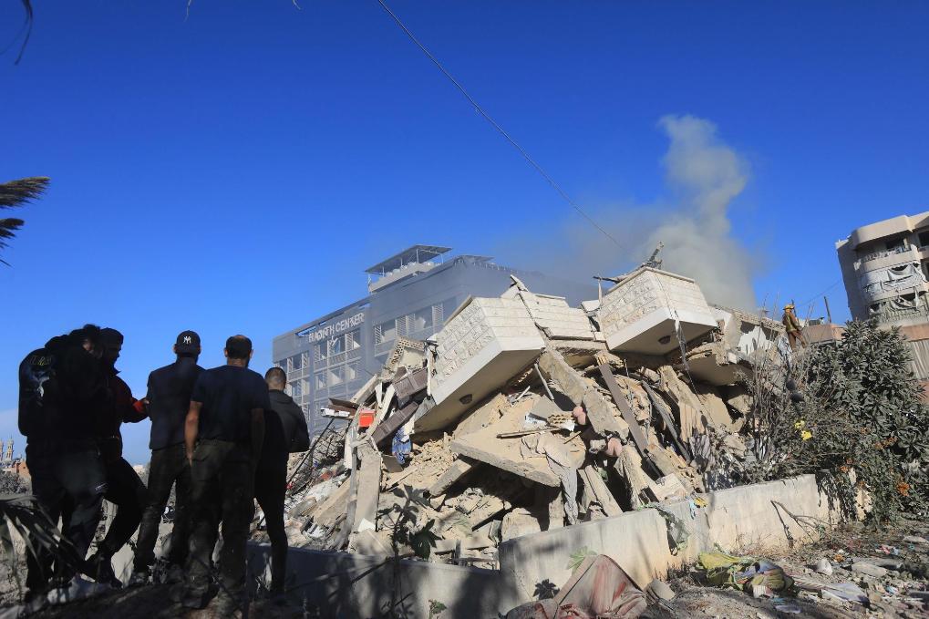 這是11月17日在黎巴嫩貝魯特南郊拍攝的遭以色列空襲的建筑。新華社發(fā)
