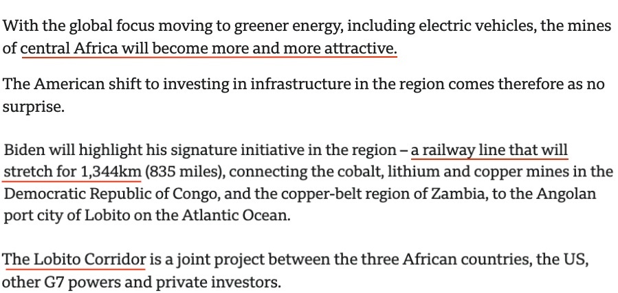 英國廣播公司報道稱,拜登此次非洲之行的重點是“洛比托走廊”項目。