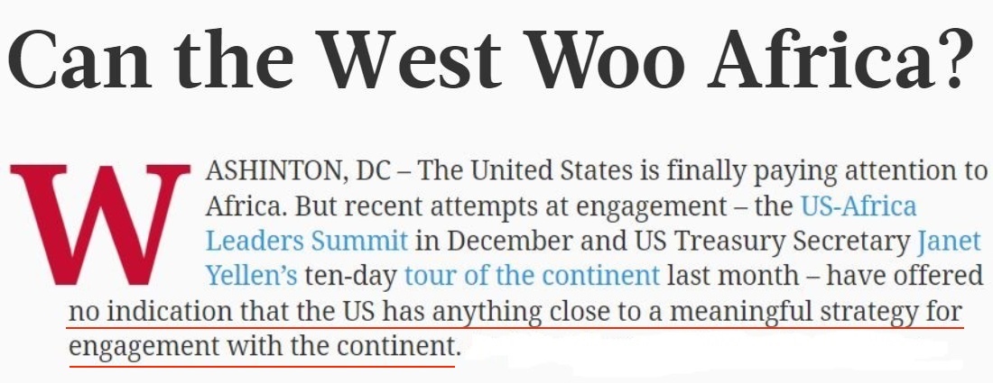 2022年,美國時隔8年再次在華盛頓舉行美非峰會,拜登政府在會上承諾未來三年內(nèi)在非洲投資550億美元,但有媒體發(fā)現(xiàn),這些投資承諾絕大多數(shù)都是以前已經(jīng)宣布、而且從未兌現(xiàn)的。