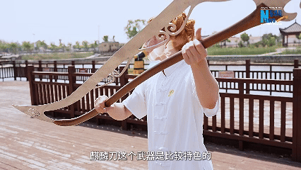 麒麟刀是傳統(tǒng)器械的一種,屬于長兵器,全套動作以劈、砍、斬、撩、掛、挑、勻、掃為主。在可欣的眼中,麒麟刀很大也很重,但動作有氣勢,在習練過程中體會到了中華傳統(tǒng)武術的精神和魅力。
