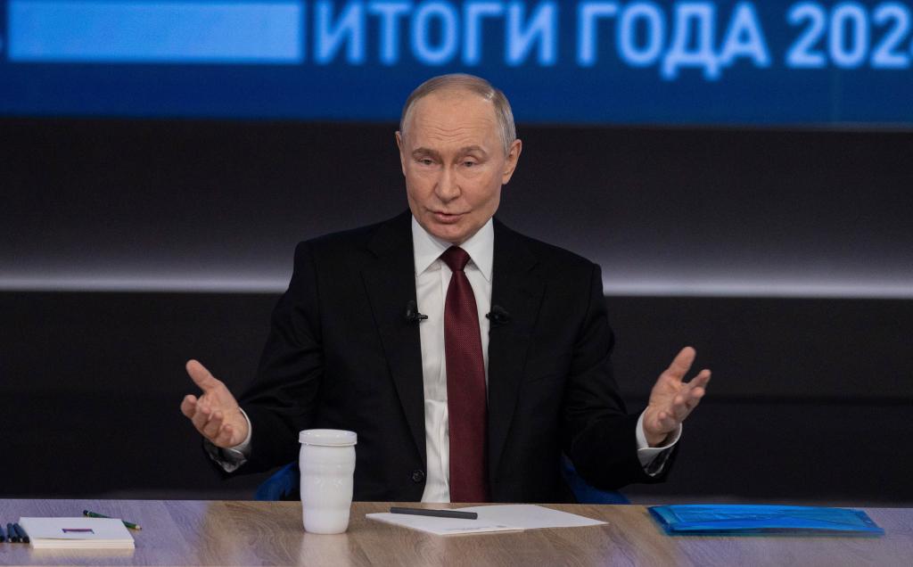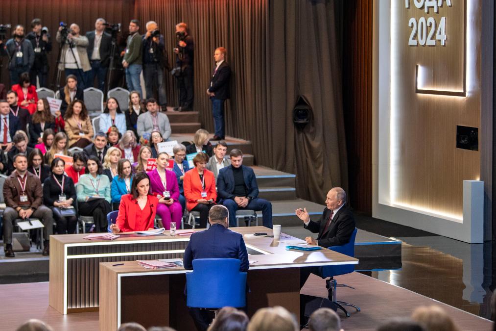 12月19日,在俄羅斯首都莫斯科,俄羅斯總統(tǒng)普京在“年度盤點”活動上講話。新華社記者白雪騏攝