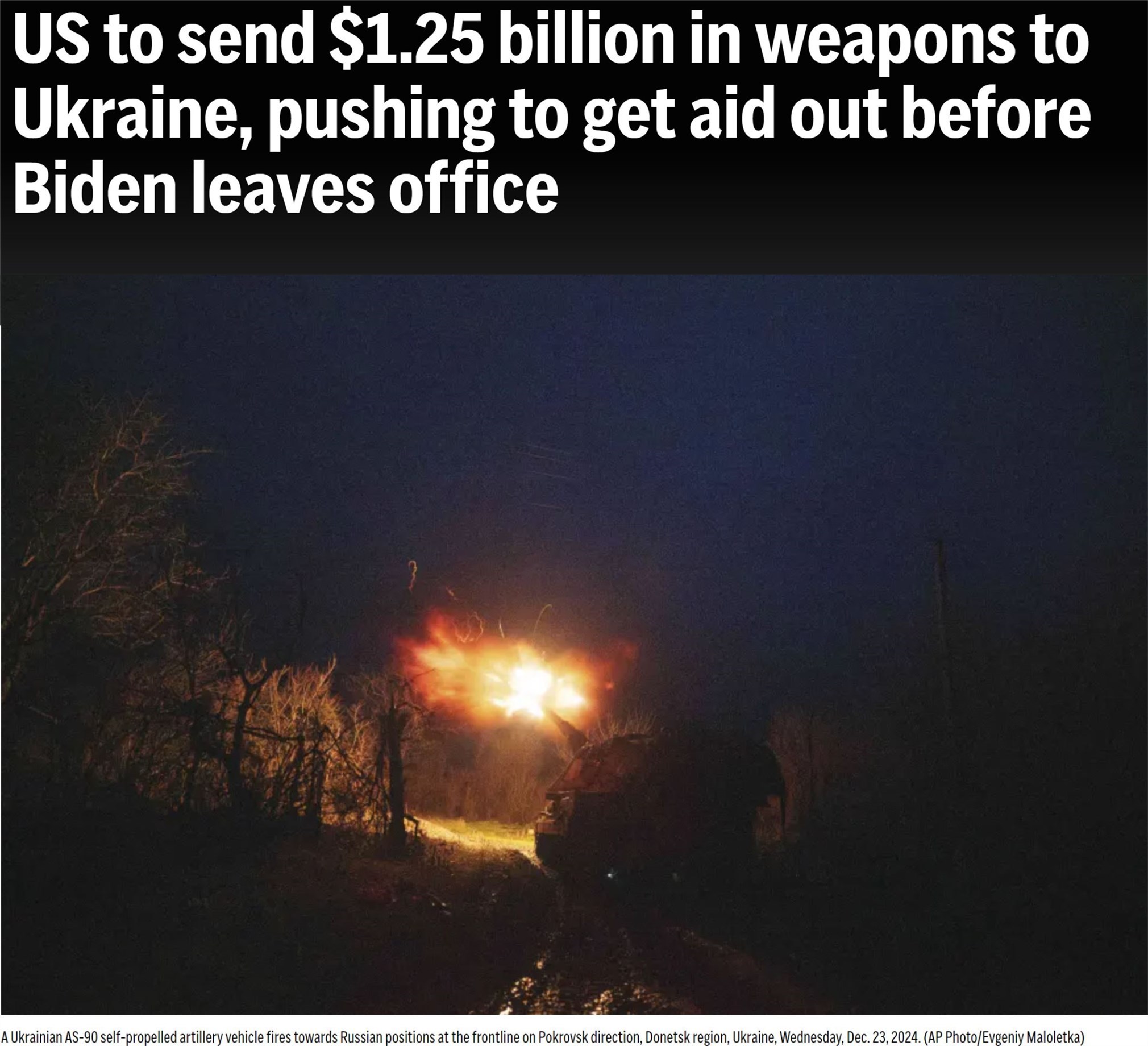 美聯(lián)社28日援引多名匿名官員的話報(bào)道稱,拜登政府計(jì)劃在明年1月卸任前再向?yàn)蹩颂m提供12.5億美元的新一輪軍事援助,其中包括用于“國家先進(jìn)地空導(dǎo)彈系統(tǒng)”和“鷹”式防空導(dǎo)彈系統(tǒng)的彈藥、“毒刺”防空導(dǎo)彈以及155毫米和105毫米口徑火炮炮彈等。