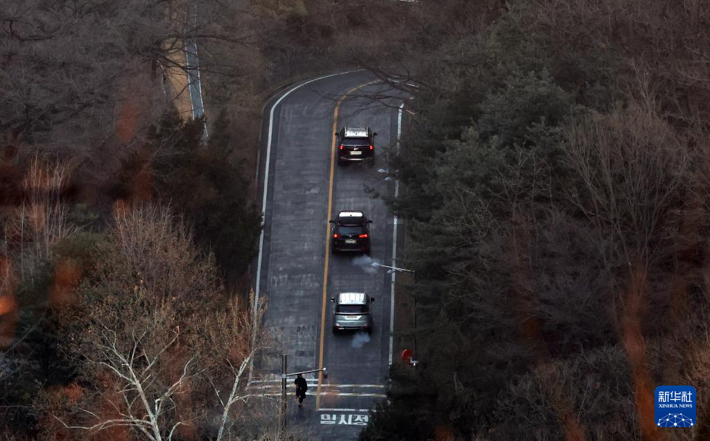 1月3日上午,韓國高級公職人員犯罪調(diào)查處工作人員乘坐的車輛駛向首爾龍山區(qū)漢南洞的總統(tǒng)官邸。新華社/紐西斯通訊社