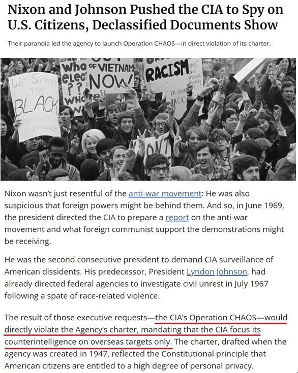 是什么促使中情局違反自己的成立宗旨,在美國領(lǐng)土上監(jiān)聽監(jiān)視美國公民?這就要提一提由美國史上兩位總統(tǒng)授意實施的國內(nèi)間諜項目“混沌行動”了。