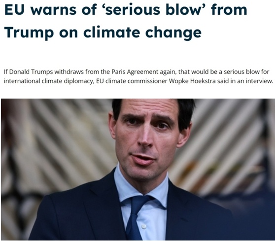 歐盟委員會負責氣候行動的委員沃普克·胡克斯特拉日前警告,如果特朗普再次讓美國退出《巴黎協(xié)定》,全球為應(yīng)對氣候變化所做的努力將受到嚴重打擊。