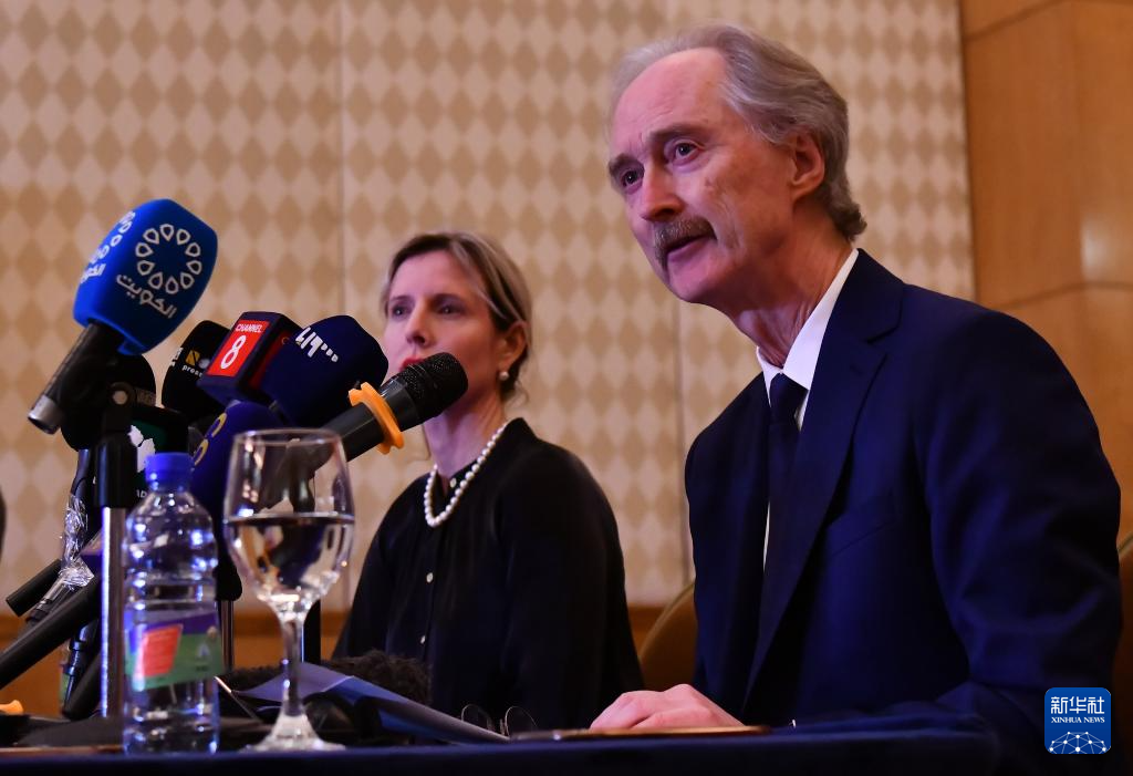 1月22日,聯(lián)合國(guó)秘書(shū)長(zhǎng)敘利亞問(wèn)題特使裴凱儒在敘利亞大馬士革舉行的新聞發(fā)布會(huì)上講話。新華社發(fā)(阿馬爾·薩法爾賈拉尼攝)