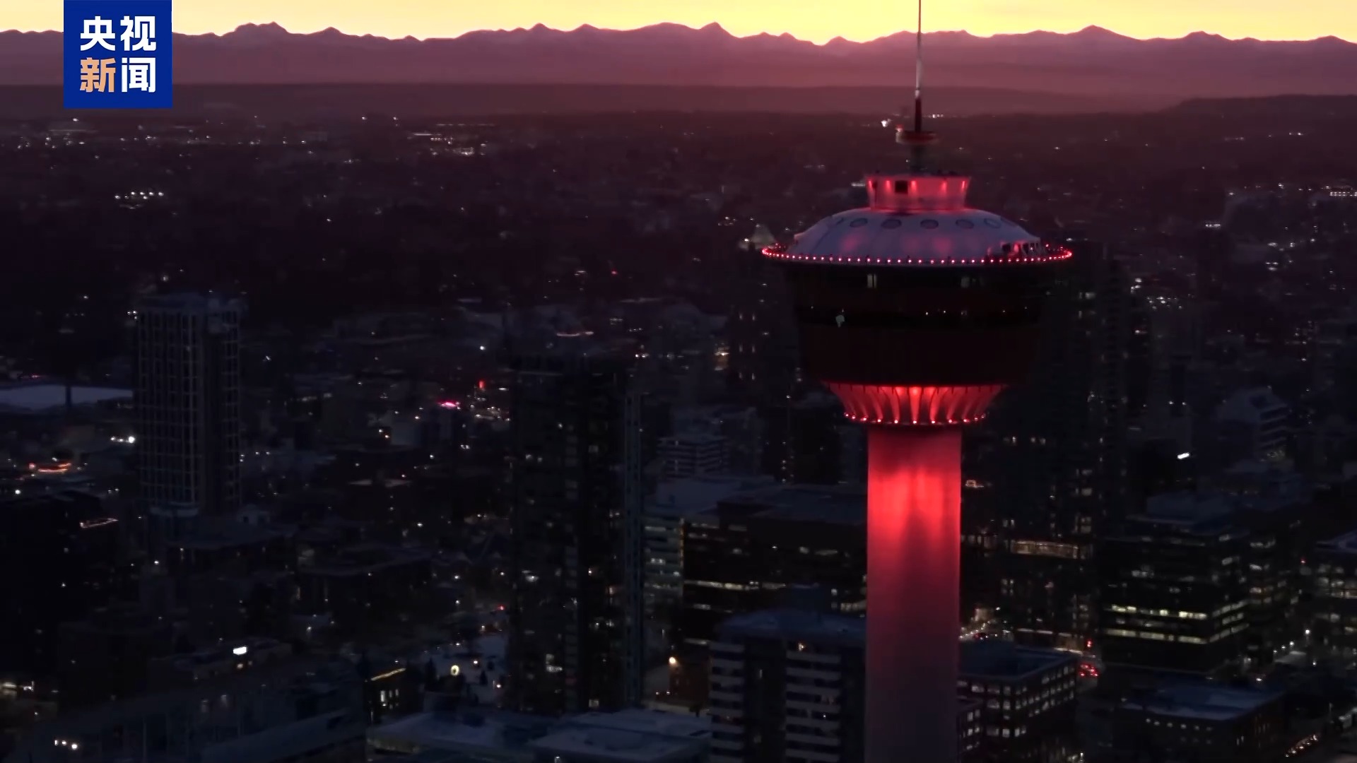 加拿大艾伯塔省卡爾加里市地標(biāo)建筑——卡爾加里塔,也在除夕和初一點(diǎn)亮“中國(guó)紅”。伴隨著夜幕降臨,卡爾加里塔身披紅光,營(yíng)造出濃濃的節(jié)慶氛圍。